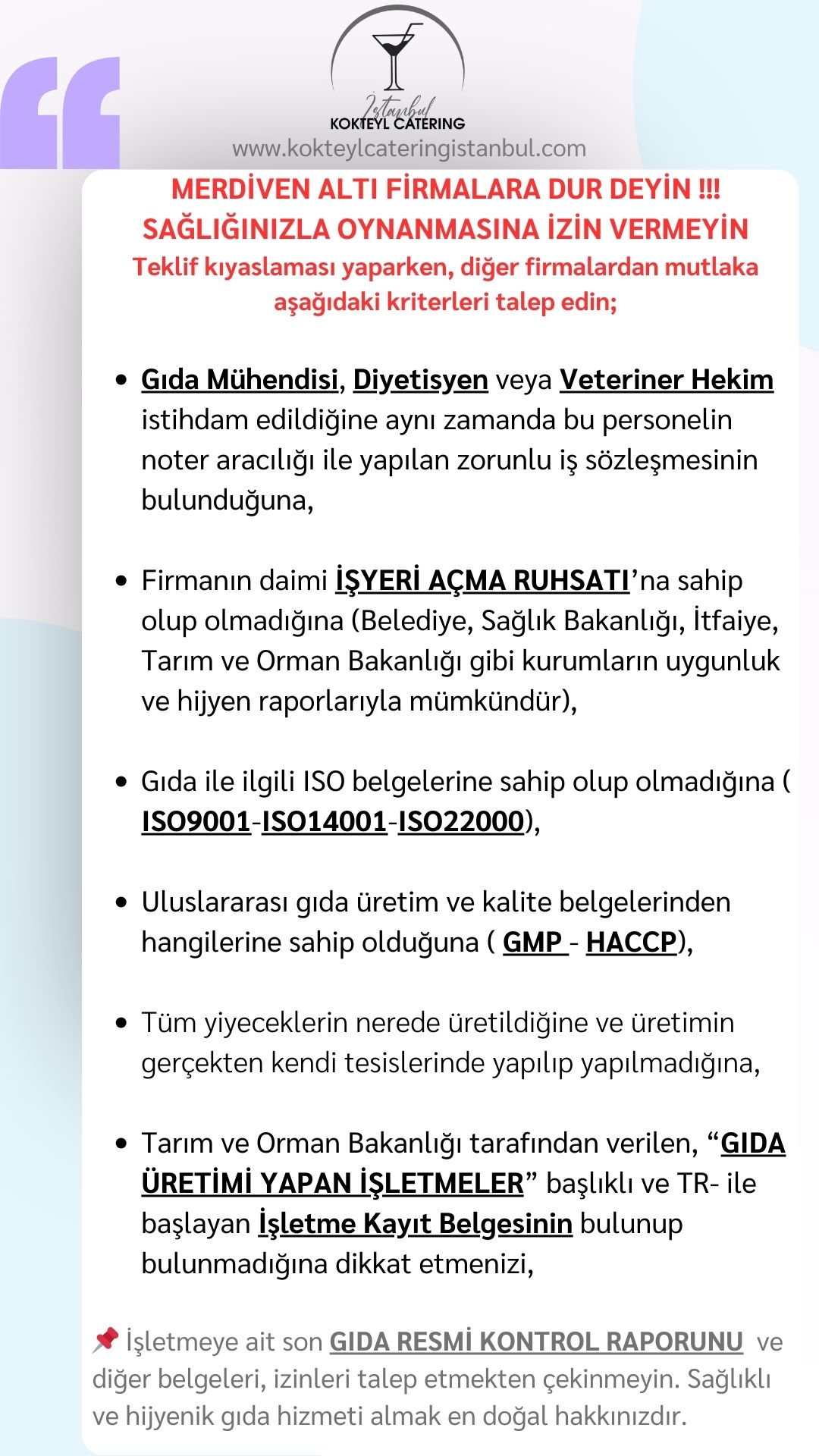 İstanbul’un eşsiz atmosferinde gerçekleştireceğiniz her türlü etkinlikte, hem göze hem damağa hitap eden bir sunum mu arıyorsunuz? İşte bu noktada İstanbul kokteyl catering hizmetimiz devreye giriyor. Kurumsal toplantılardan düğünlere, fuar alanlarından doğum günü kutlamalarına kadar her mekan ve konsepte uygun, yüksek kalite standartlarında hizmet…